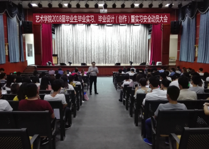 2017年7月3日,我院在校大礼堂召开2018届毕业生实习、毕业设计(创作)暨实习安全动员大会,美术学、音乐学和艺术设计学180多名毕业生参加了动员会。副院长何谦、谢朝玺,学生科科长蔡跃出席并讲话,2018届毕业班班主任、辅导员、实习带队教师、监控教师一同参加。动员会由专门负责实习工作的龙义敏老师主持。