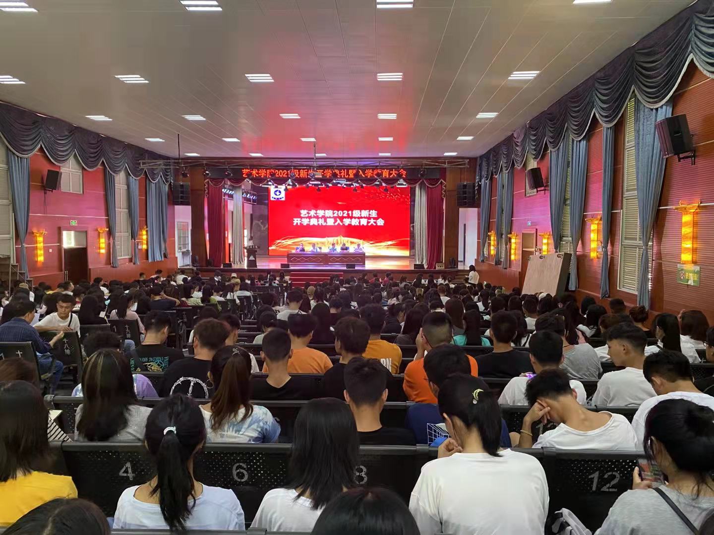9月10日下午,艺术学院2021级新生开学典礼暨入学教育大会在学校大礼堂举行。院党委书记陈观黔、院长罗文帝、副院长谢朝玺、副院长何谦出席,各科室负责人、新生班班主任以及2021级全体新生参加典礼。典礼由院党委专职副书记刘颖主持。开学典礼在庄严的国歌声中拉开序幕。2021级设计学(2)班学生李佩珂作为新生代表、2021级音乐学班主任张琪作为新生班主任代表先后发言。随后,何谦副院长为同学们作教学方面的介绍,罗文帝院长、陈观黔书记先后以《努力做学习好、能力强、格局高的新时代大学生》、《不负韶华,争当一名优秀大学生》为题作入学教育报告,并对全体新生寄予深切的勉励和殷切的期望。