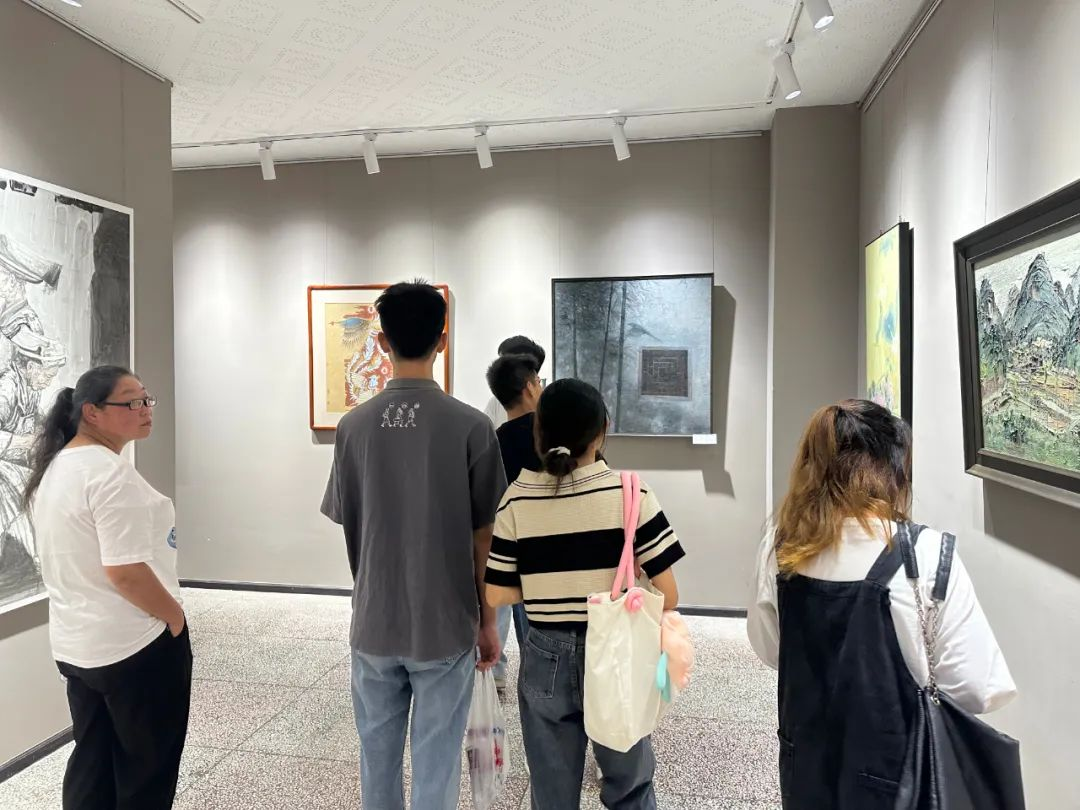 开幕仪式后,领导和来宾们走进展厅饶有兴致地参观展出的美术作品并与作者进行亲切交流。期间,安顺学院艺术学院师生和书画爱好者纷纷走进展厅参观学习,交流品鉴。