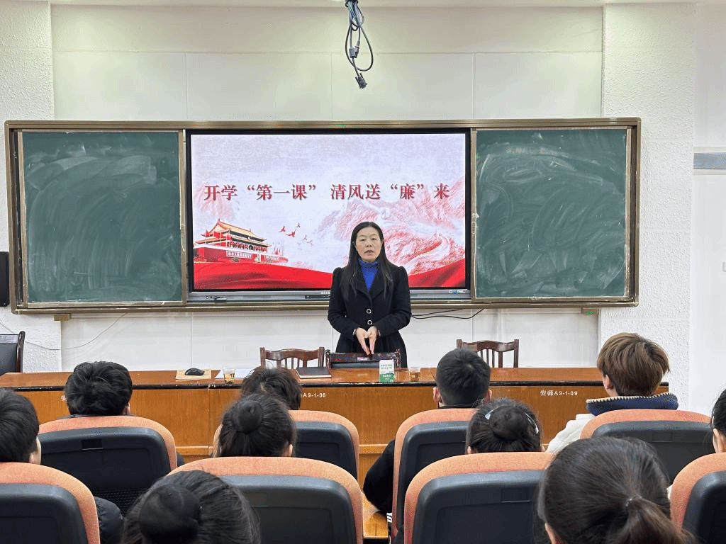 为深入贯彻落实全面从严治党要求,加强大学生廉洁教育,3月12日上午,安顺学院党委委员、纪委书记、监察专员蔡红英以班级导师身份走进2023级舞蹈学班,以“开学‘第一课’清风送‘廉’来”为主题,为同学们带来了一堂意义深刻的廉政教育课。